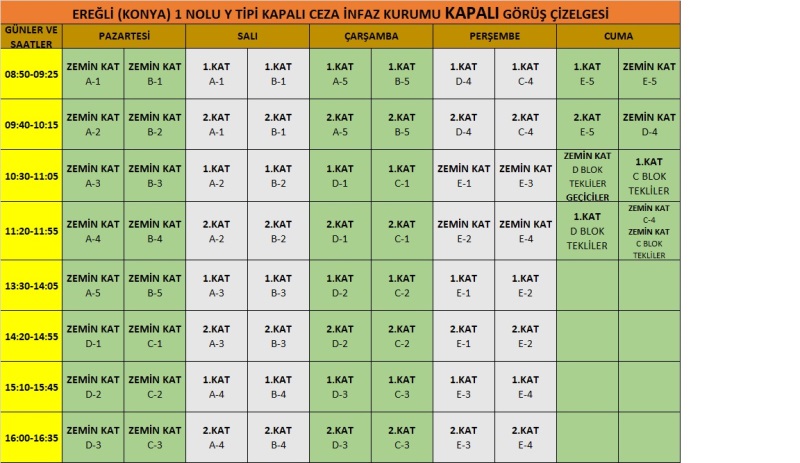 EREĞLİ (KONYA) 1 NOLU Y TİPİ KAPALI CEZA İNFAZ KURUMU AÇIK VE KAPALI GÖRÜŞ GÜNLERİ GÜNCELLENMİŞTİR